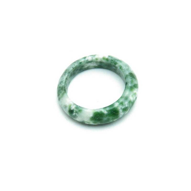 Ring, halfedelsteen, donkergroen, gevlekt, maat 15 (1 st.)